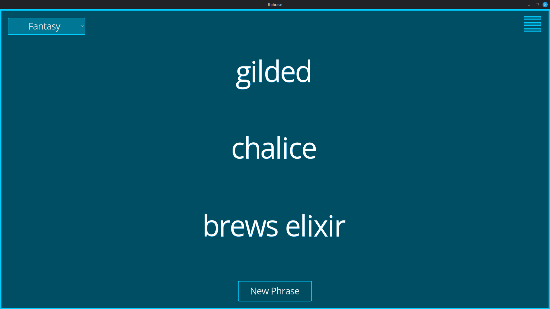 Rphrase v1 is a phrase generator pulling from over 1200 words!